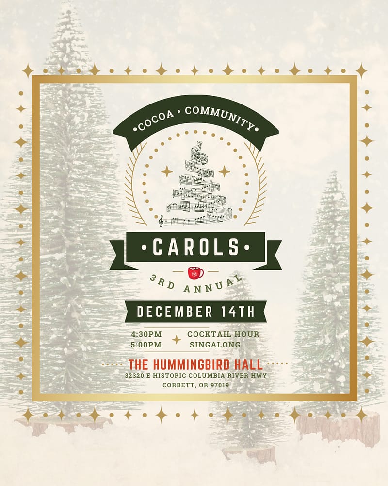 Join friends and neighbors for Hummingbird Hall’s 3rd annual Cocoa, Community & Carols celebration! Enjoy free hot cocoa, festive décor, and live Christmas music performed by local musicians in a cozy, family-friendly setting. Personalized charcuterie boxes will be available for purchase, and a holiday cocktail vendor will be serving festive drinks for adults.
