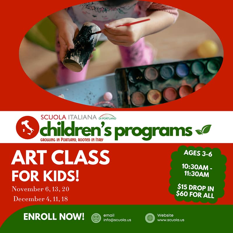 Join us this fall and winter for an engaging hands-on art class where children explore different materials and learn how to find joy in creating. This is a drop off class which begins at 10:30am and pickup is at 11:30am. A wonderful way to explore creativity while working with other similar age kids! $15 per class. Register Here