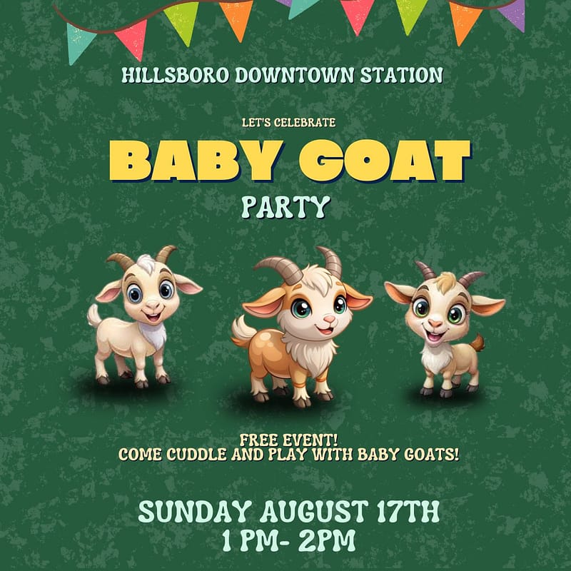We will be joined by our friends at Portland Goat Parties for a baby goat power hour! Come take a “Kid” pic for a memory that will last a lifetime. This is a free community event. Come have lunch and see some goats!