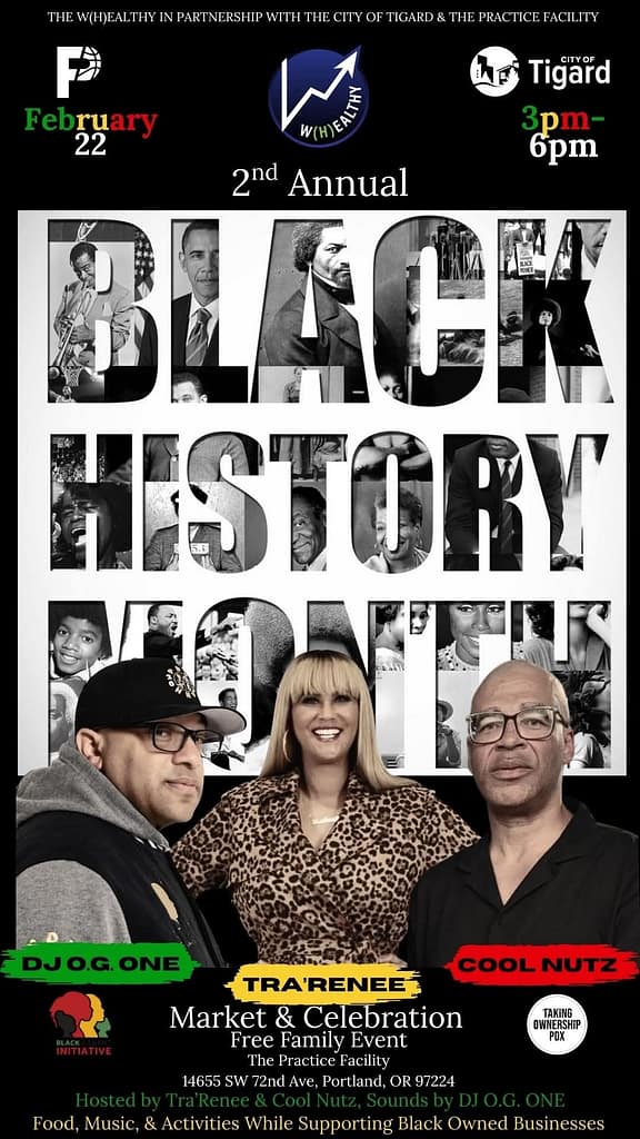 We’re excited to announce this years 2nd annual Black History Month Market & Celebration Sunday February 22nd 3pm – 6pm at The Practice Facility (14655 SW 72nd Ave, Portland OR, 97224)