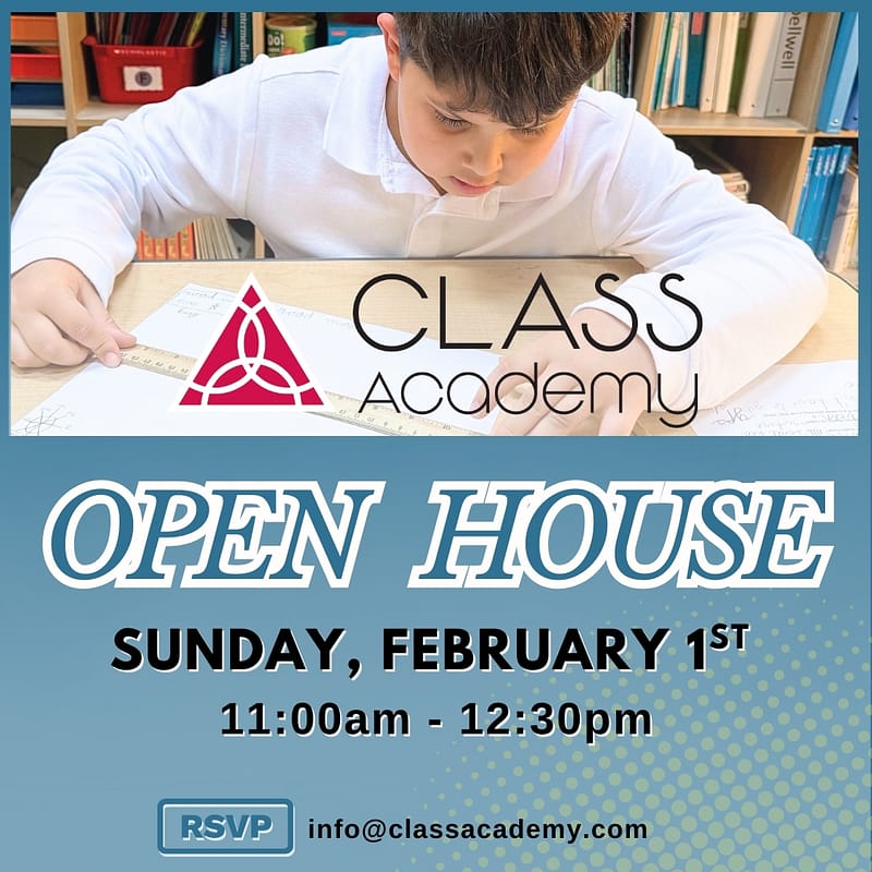 Prospective families are invited to visit CLASS Academy for an upcoming Open House! Tour our classrooms, meet our dedicated educators, and learn more about our individualized, small-class learning environment for students preschool through 5th grade.