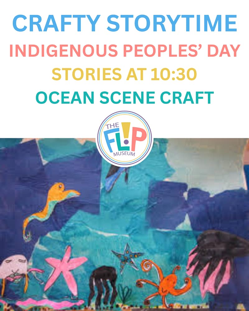 Every week at FLIP, we focus on a different culture, community, or holiday. This week, we are celebrating Indigenous Peoples’ Day. Come listen to stories about Indigenous Culture today. Then make an ocean scene craft.