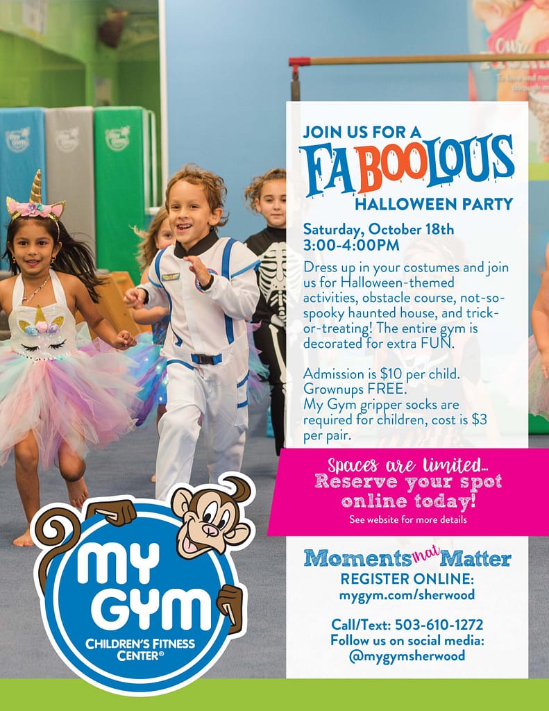 Have the whole family (or the kids at least😊) put on your costumes enjoy a Boo-riffic time at our Halloween Party. This session is for all ages 0-9 years old. Be prepared to play! The gym will be decorated in its Spooktakular best and activities include obstacle courses, a not-so-haunted house, PLUS we end with trick or treating around the gym.