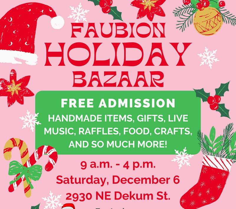 Head to the Faubion Holiday Bazaar for handmade items, gifts, live music, raffles, food, crafts, and so much more! Black Santa will be there throughout the day, and from 12-4pm and there will be a CRAFTERNOON with a fun holiday activity ($10 to participate).