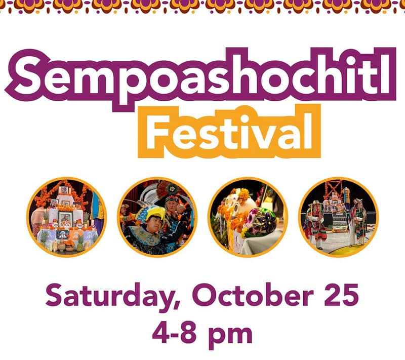 Discover the beauty of the marigold flower through tradition, tamales, therapeutic uses, and art. Enjoy live music, Aztec dance, raffles, and performances.