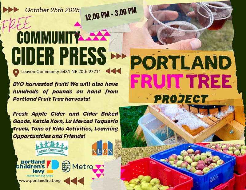 Portland Fruit Tree Project will be pressing cider from apples from the urban orchard, and attendees are welcome to bring their own as well! 🥰🍎🍏