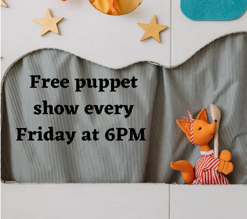 Enjoy a free puppet show from Dragon Theater Puppets and Princesses every Friday at 6pm at PlayDate PDX! Note: if your kiddos beg to play on the play structure, admission for that is $10 on Fridays.