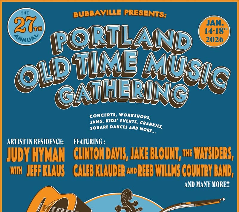 Enjoy a packed weekend of concerts, square dances, workshops, jamming, kids programming and much more at the Portland Old Time Music Gathering! This event brings some of the top performers in modern old time music to the Gathering stage in 2026, including Judy Hyman, Jeff Claus, Jake Blount, Clinton Davis and many others. Kids workshops, open mics, family square dance, etc. are mostly on Saturday, 1/17. Check out the event host’s Schedule page for complete details. The gathering has a range of free and paid events, and it takes place at various locations in Portland. Kids under 16 get in for free to all events.