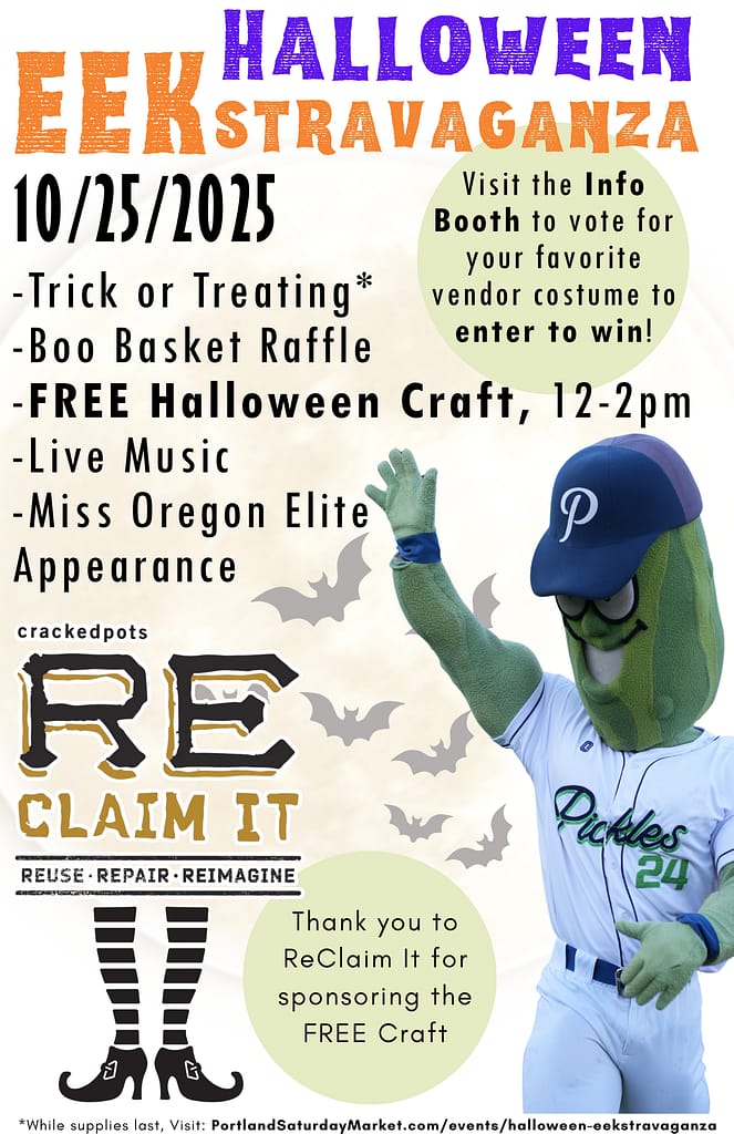 Join Portland Saturday Market, the Portland Pickles, and ReClaim It for an unforgettable creative kickoff to Halloweek!