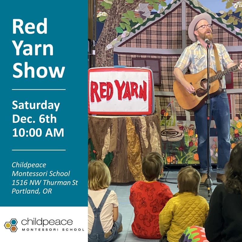 Portland family performer Red Yarn & his Critter puppets will perform in our Childpeace playroom on Saturday, December 6th. This high-energy, all ages show is open to the public so bring your friends! Suggested Donation: $10–20 per family