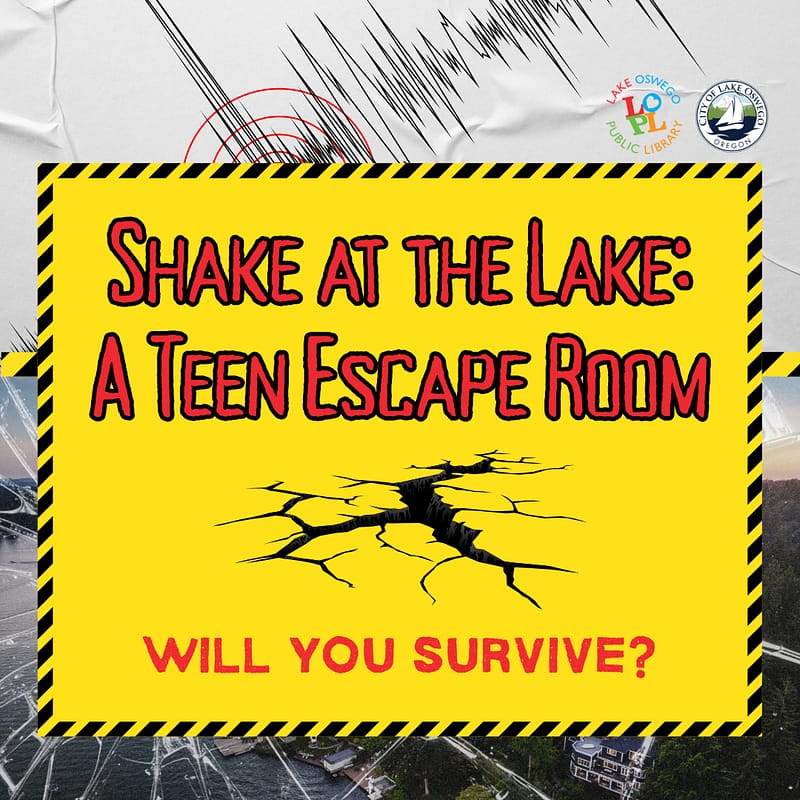 In this 60-minute escape room, you are studying at a friend’s house with several classmates when suddenly a huge earthquake strikes! You’re all trapped inside and must work together using logic and quick thinking to decode clues and solve puzzles. Racing against the clock, you’ll need to neutralize hazards and address damages to keep everyone safe. Teamwork required—survival not guaranteed! Registration is required with a 6 person maximum: www.lakeoswegoreads.org/register. For more information, email loteen@lakeoswego.city or contact the youth services desk at 503-697-6580.