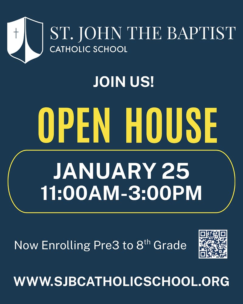You’re invited! Please join us for an open house at St. John the Baptist Catholic School in Milwaukie on Sunday, January 25, 2026 from 11am – 3pm. Come see what makes our school special – tour the school, meet our staff, and discover a welcoming, faith-filled learning environment for your child. Now accepting applications for Preschool to 8th Grade. We can’t wait to welcome you!