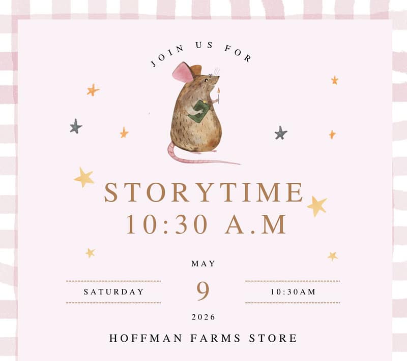 Head to Hoffman Farms for a sweet storytime at 10:30am! Stay and play on their play structure afterwards or have yourself a picnic, too!