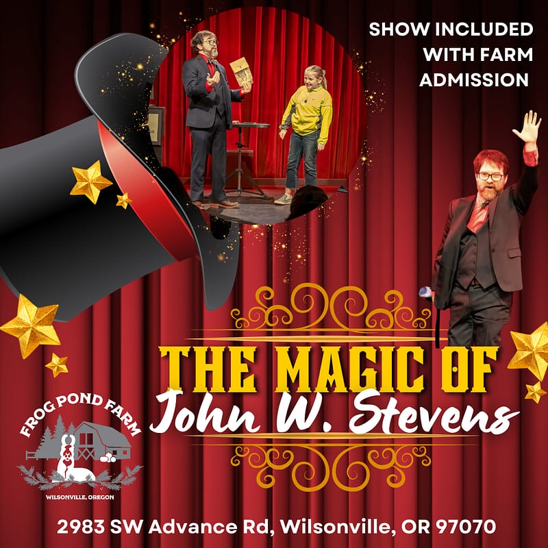 Be amazed and inspired as The Magic of John W. Stevens returns to Frog Pond Farm with mind-bending tricks and illusions!