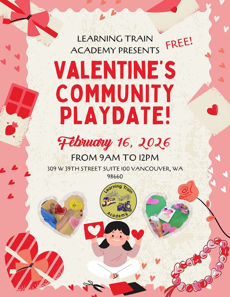 Come explore a morning of Valentines crafts, activities and fun for the whole family! Learn what Learning Train Academy Child Development Center is all about while you’re here.