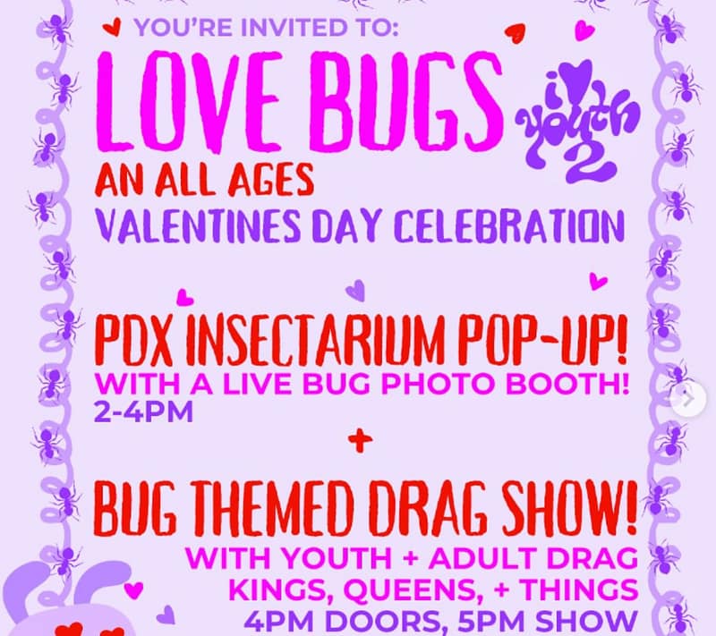 ILYouth2 and the Portland Insectarium are stoked to be bringing you β£οΈπͺ²LOVE BUGSππ an all ages Valentines Day celebration!!!!!