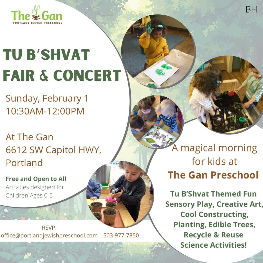 The Gan – Portland Jewish Preschool TU B’SHVAT FAIR & CONCERT Sunday, February 1 10:30 AM – 12:00 PM Location: The Gan 6612 SW Capitol Hwy Portland Free and Open […]