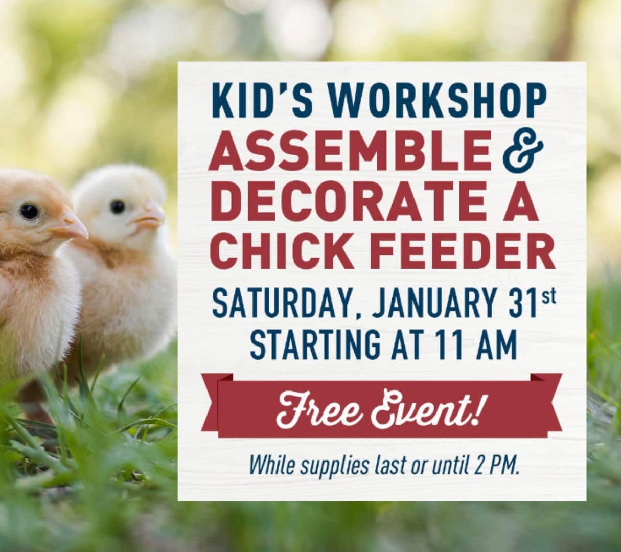 Head to a Wilco store near you for a FREE Chick Craft Kid's Workshop on Saturday, January 31st starting at 11 am! Kids will have a blast assembling and decorating […]