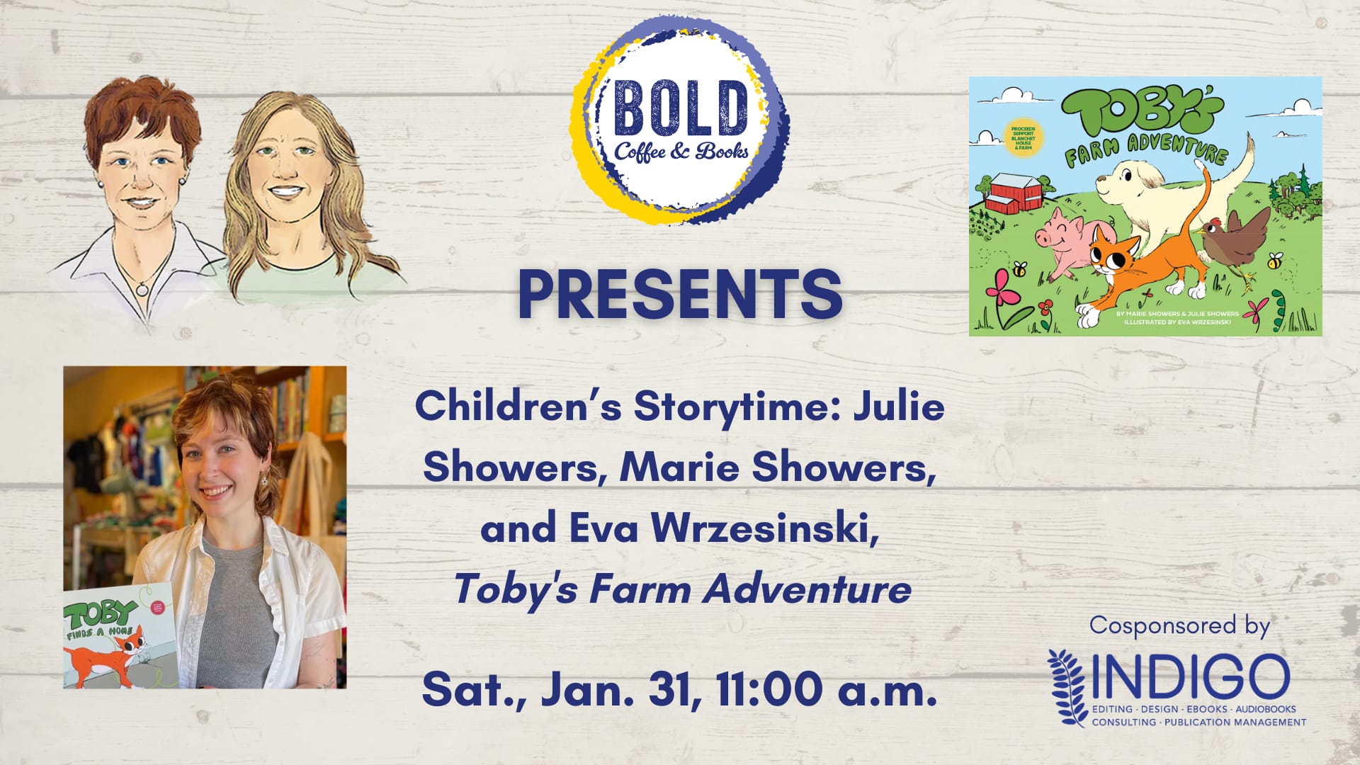 BOLD is thrilled to host a special children’s storytime with Julie Showers and Marie Showers, co-authors of Toby's Farm Adventure, and Eva Wrzesinski, illustrator of Toby's Farm Adventure. Farm Fun! Join us for […]