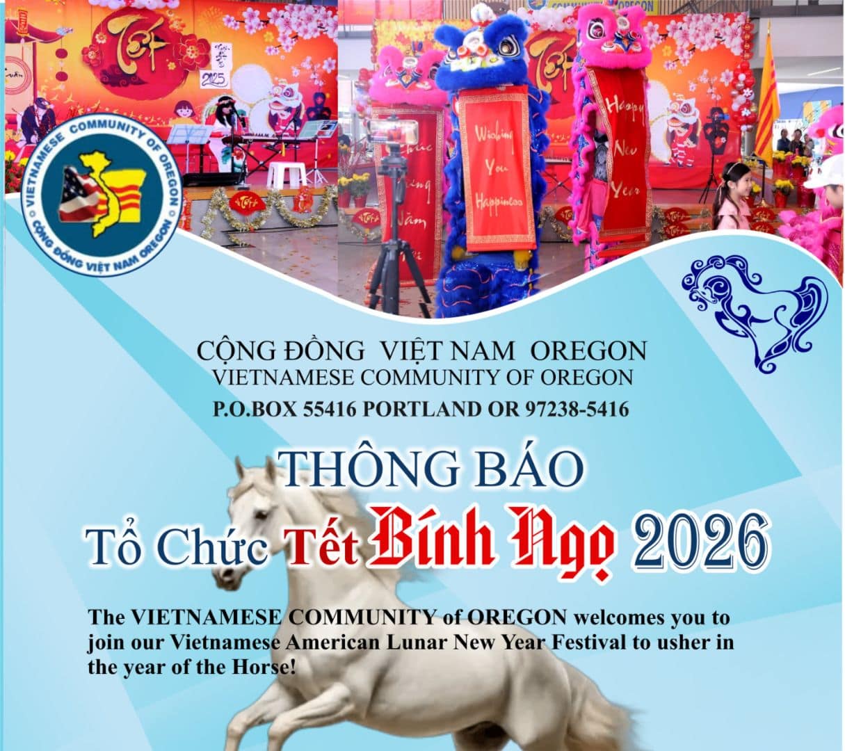 Bring in the Year of the Horse with an afternoon of incredible performances: 1:00 pm Korean Dance / Oregon Korean Performing Arts 1:30 pm Folk Songs / Rulin Xiu, singer 2:00 pm Line Dances / Vietnamese Seniors Social Club 2:30 pm Lion Dance / International Lion Dance