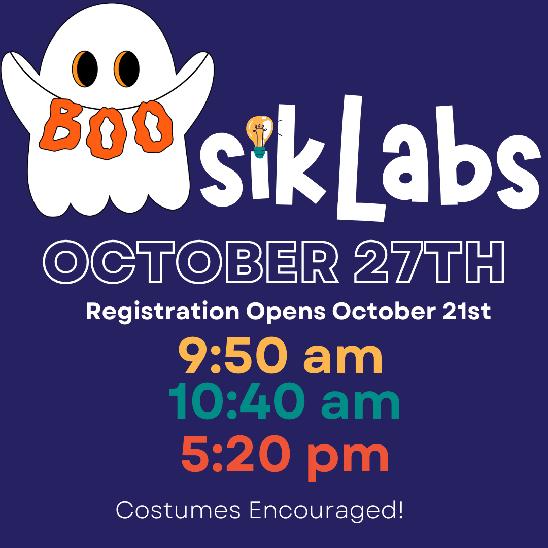 Spooky (not really) tunes, costumes encouraged, and we will keep lights off for glowing props! What is a MusikLab? We provide the space and instruments and you do whatever moves you. MusikLabs are unstructured, all ages (we recommend 6 months - 9 years), and all abilities. Visit our website for details. Registration is required for each […]