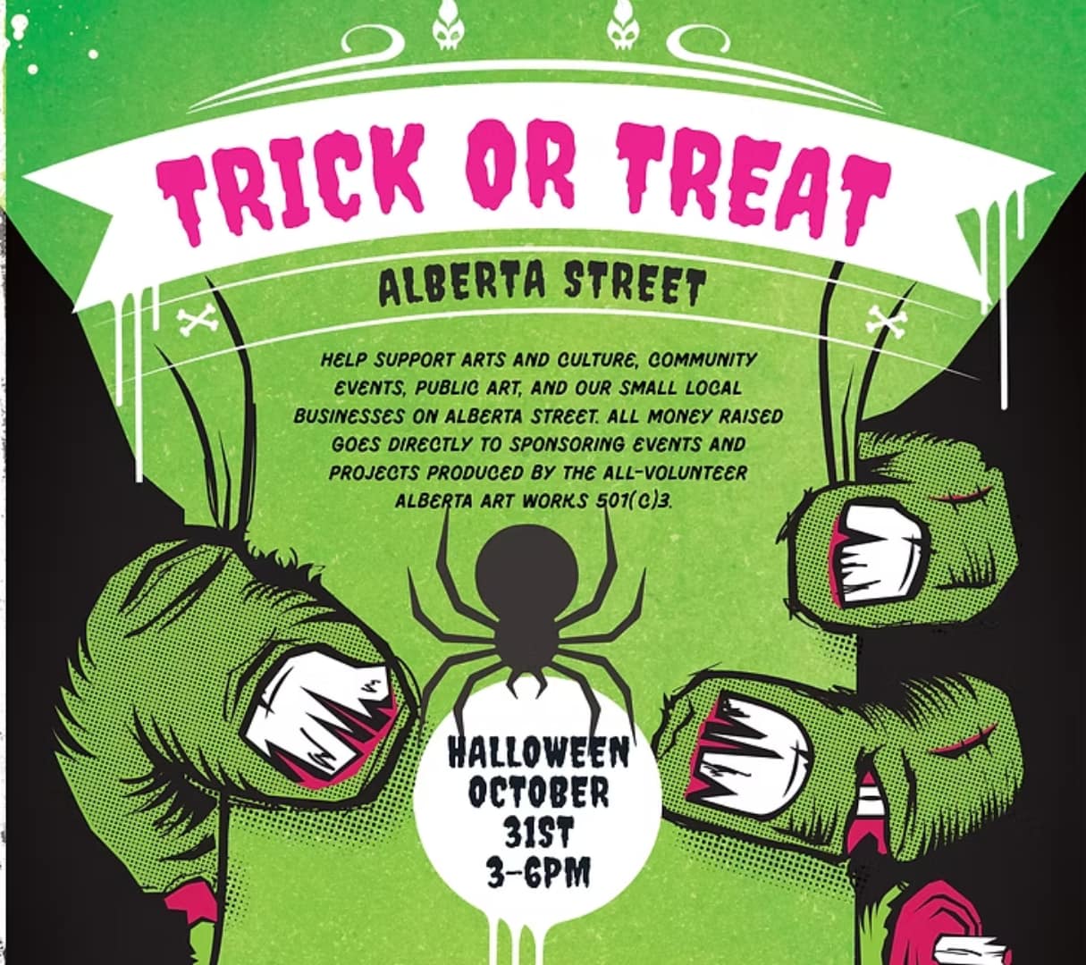 Celebrate Halloween by trick-or-treating on Alberta Street! Head to beloved Alberta Street businesses for fun treats from 3–6 p.m.