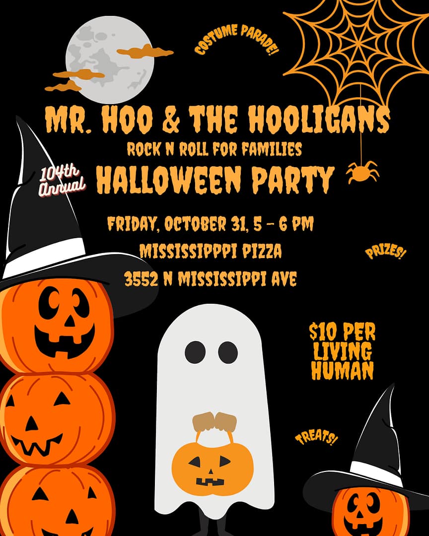 It should say "Mr. Boo" (and the Booligans?) Join us for a big, spooky, fun, cute Halloween party at Mississippi Pizza. There will be prizes, treats, music (full band!) and […]