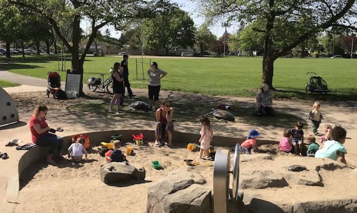 This quaint park is known to locals as “dump truck park.” The park has a large sand box, complete with sun shades in the sunny months, filled with toys trucks of all sizes, plus toy excavators. It is a gem for kids who love vehicles, and digging in the sand!