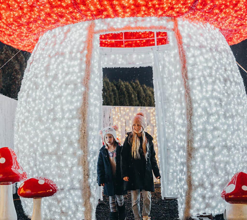 Step into a walk-through winter wonderland filled with towering light sculptures, sparkling tunnels, and larger-than-life holiday scenes. Kids will love helping Santa track down his “lost presents” hidden throughout the displays, and grownups can browse the Merry Maker’s Market, warm up with treats from local food vendors, and catch live entertainment along the way.