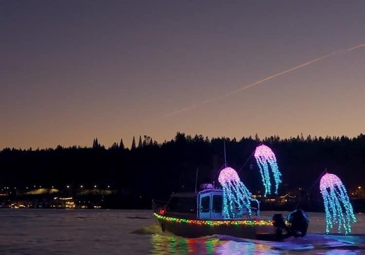 The Christmas Ship Parade started in 1954 with one lone sailboat. Today, The Christmas Ship Fleet averages about 55 to 60 boats ⚓ between the Columbia and Willamette River fleets, with brightly lit displays that can be seen from bank to bank on each river. 🌊 (If you feel up to a huge splurge, you can book a Christmas Ship Dinner Cruise on the Portland Spirit for an up-close view.)