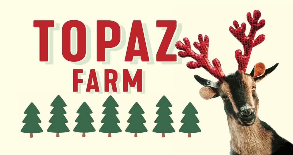 Kick off the season at Topaz Farm, where starting Thanksgiving week you can pick out a beautiful Christmas tree, sip hot cocoa by the fire, visit the animals, and shop the holiday market. Santa will be on the farm for two days onlyβand visits are free. Choose from hundreds of Douglas and Noble firs, pick up a wreath, enjoy adult beverages around the fire pit, and make it a cozy yearly tradition. No admission or tickets needed.