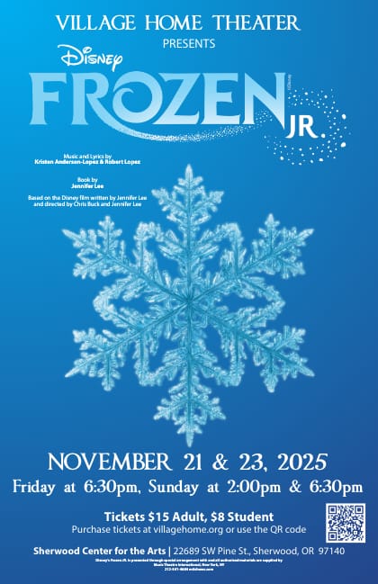 Join Anna and Elsa for Frozen Jr. presented by the Village Home Theater Program!❄️Tickets are $8 for kids and students. Tickets are $15 for adults. Showtimes are: 11/21 at 6:30pm; 11/23 at 2pm and 6:30pm.