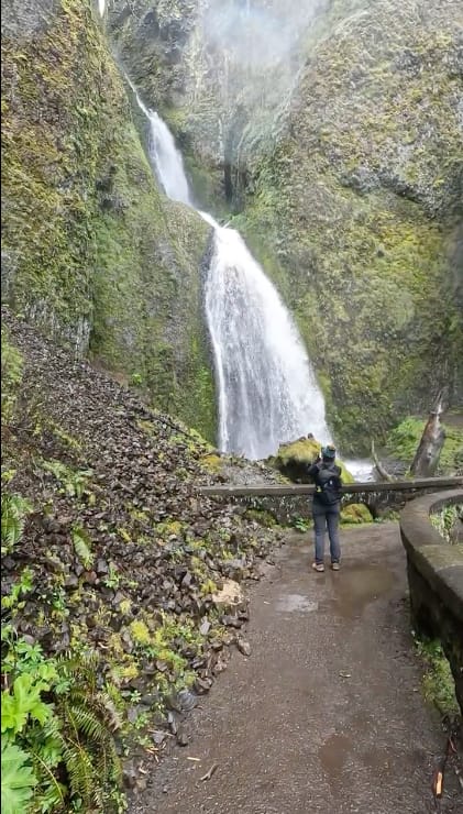 Wahkeena has a wow factor for sure. The lower falls are less than a quarter mile from the trailhead, and there is also a viewpoint higher up if you want a little more movement without committing to the full Multnomah-Wahkeena loop. That larger loop is closer to five miles with around 1,600 feet of gain, which is a whole different family outing, so you do you.