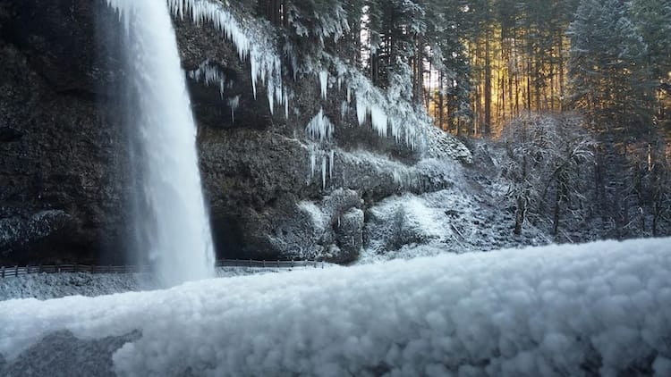 The falls of course! You don’t even need to leave the park. Each of the two hikes listed feature the mesmerizing experience of walking behind not one, but two waterfalls where you can experience the waterfall with nearly all your senses: the thundering roar of the water, the damp, earthy smell, the ice-cold spray. And if you want to head into town to see some stunning holiday lights and shop for holiday gifts, hit up the Silverton Christmas Market at the Oregon Garden Resort, which runs most nights from November 21 to December 31.